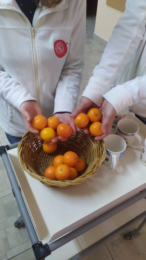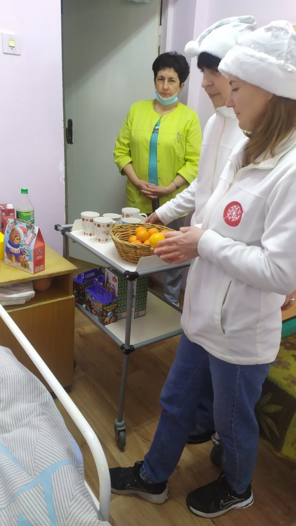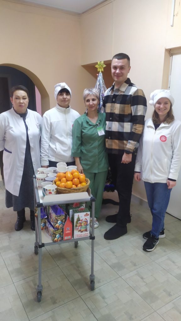 В отделении сестринского ухода Озёрской БСУ Городской поликлиники N4 г.Гродно пациентам, которым оказывается медико- социальная помощь 22.12.2025 волонтёрами и сотрудниками социально- благотворительным учреждением «Центр Помощи Жизни» во главе с директором Олегом Александровичем Горбачевым проведена благотворительная компания «Мандаринки добра». Пациентам были вручены кружечки, сладкие новогодние подарки , фрукты. Сотрудникам отделения сестринского ухода пожелали крепкого здоровья, счастья и исполнения всех желаний!