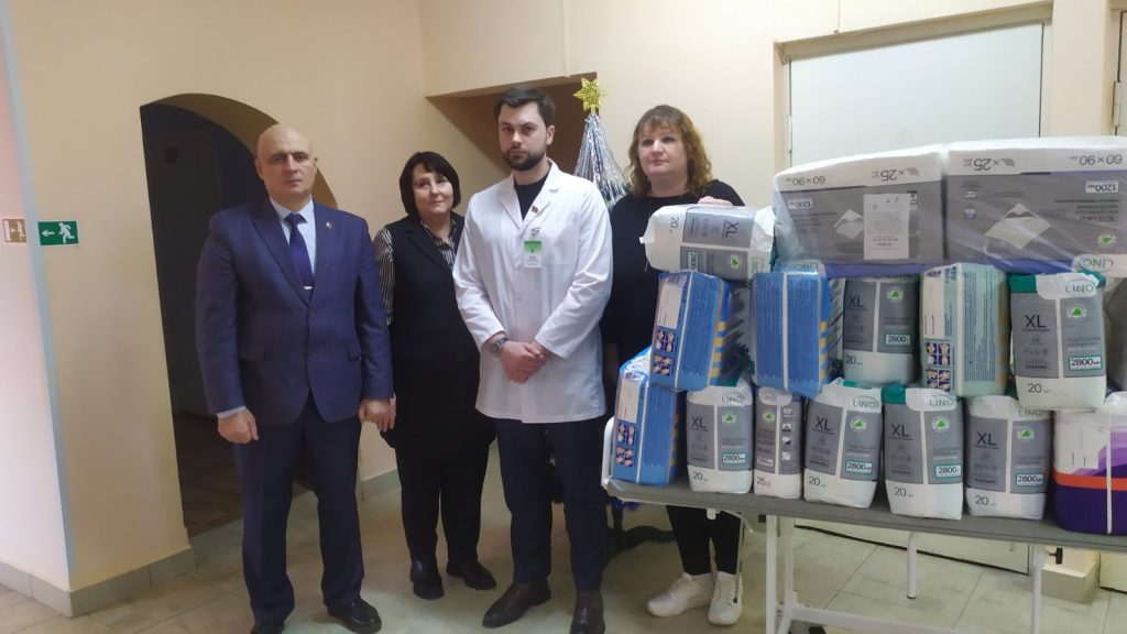 Накануне праздников Озёрскую БСУ посетила делегация Института «Гражданпроект» г. Гродно во главе с заместителем директора Ю.И. Карпутем. Гости поздравили пациентов и коллектив с наступающими праздниками и передали учреждению гуманитарную помощь в виде средств личной гигиены и подгузников. Выражаем искреннюю благодарность за внимание и практическую поддержку!