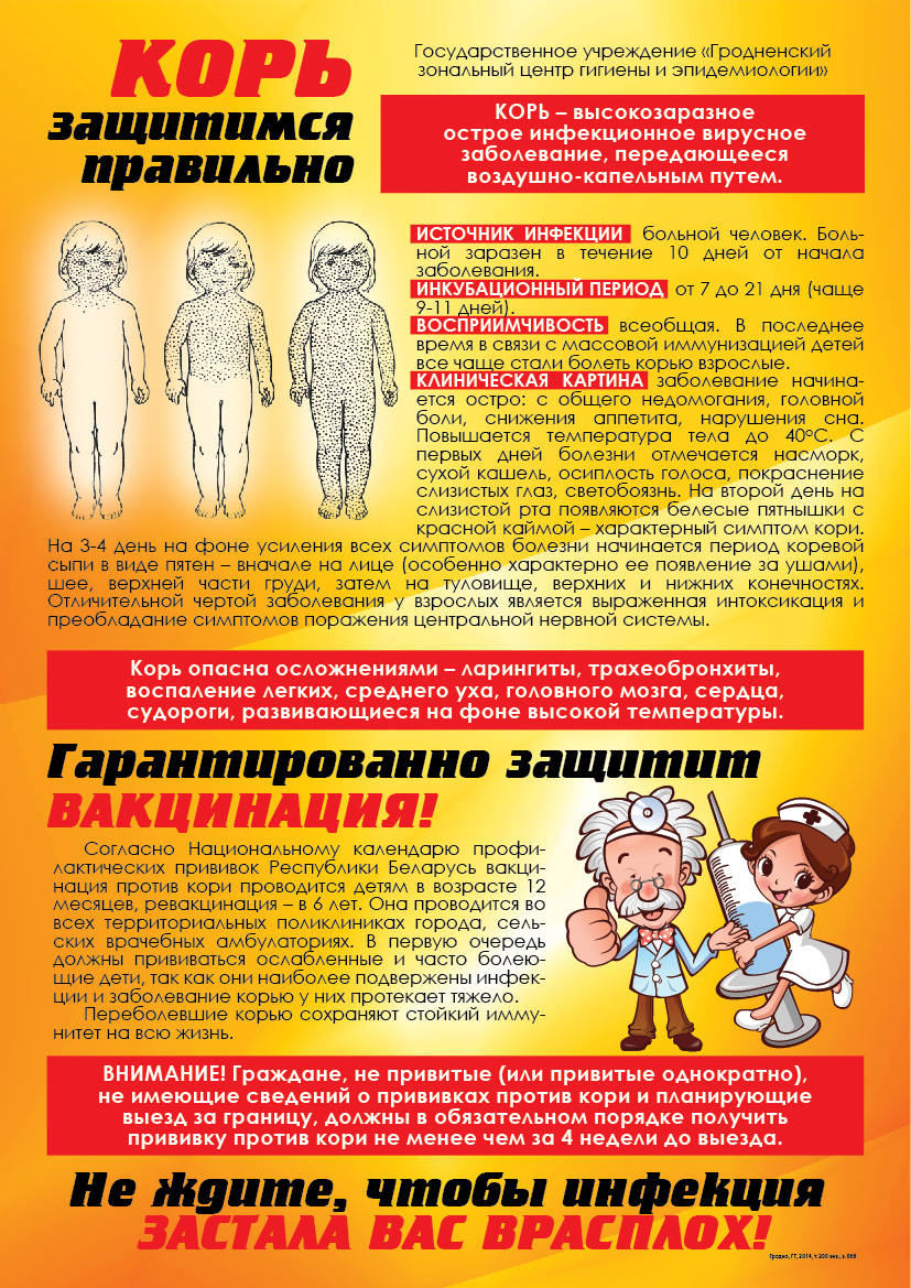 Помните : инфекции, прививки против которых включены в Национальный календарь, опасны своими осложнениями. После проведения профилактической прививки вырабатывается высокоспецифический иммунитет (организм приобретает устойчивость к заболеваниям, против которого проведена вакцинация). Иммунобиологические лекарственные препараты, используемые для вакцинации, являются высокоэффективными и легко переносятся.
